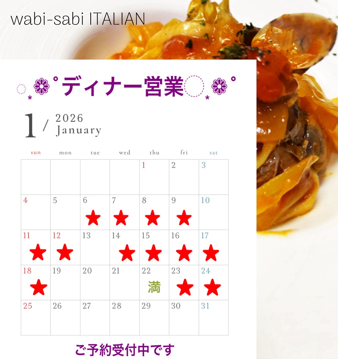 ディナー営業カレンダー